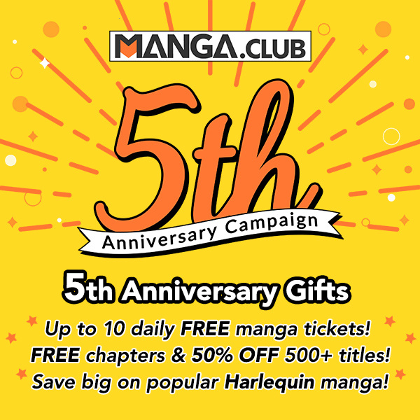 | TOM Premium members normally get 6 daily reading tickets from MANGA.CLUB. This month, in celebration of the service’s 5th anniversary, it’s been bumped up to 10 daily FREE reading tickets. Enjoy the extra tickets—along with a bunch of other discounts and bonuses, too! (Please bear in mind that some titles may include mature content.) |
