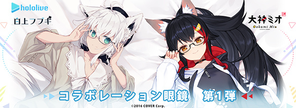 | [hololive] Back by popular demand! We’re taking a new round of orders for stylish glasses, beautifully illustrated body pillow covers, and other must-have items for fans of Fubuki & Mio. |