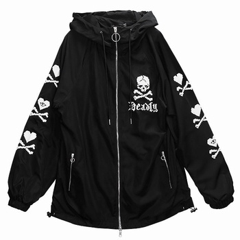 | LISTEN FLAVOR Black 8-Bit Skull Anorak Jacket |