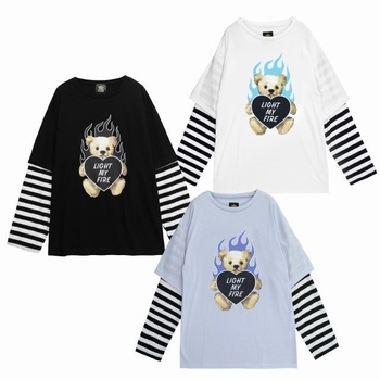 | LISTEN FLAVOR Fire Heart Bear Layered-Style Long Sleeve T-Shirt |