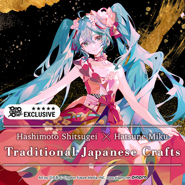 | Hashimoto Shitsugei is a company of artisans who have produced Japanese lacquerware since 1848. At their hands, the gorgeous illustration shown in the image above has been transformed into a deluxe acrylic stand with an elaborate background showcasing traditional maki-e decoration techniques. This work of art will be a unique and stunning addition to your Hatsune Miku collection! |