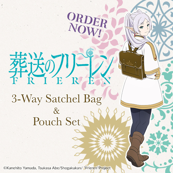 | [Frieren: Beyond Journey's End] Get her look! No, really—we’ve taken the bag depicted in this illustration and transformed it into a real-life satchel perfect for everyday use. The design was, of course, inspired by Frieren’s iconic trunk suitcase. The high-quality satchel can be used as a backpack (as seen above), a shoulder bag, or a handbag. It also comes with a bonus mini pouch that has a subtly embossed label showing Frieren being eaten by a mimic. Perfection! |