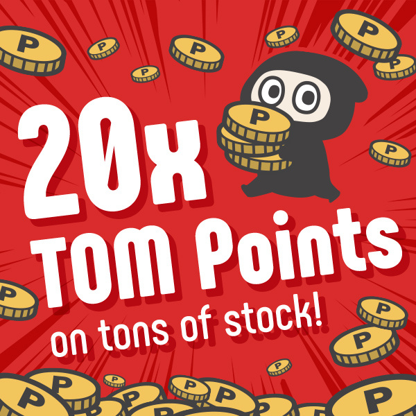 | A different type of ongoing deal: earn 20X bonus TOM Points on all kinds of in-stock figures, plastic models, otaku fashion, and more! This point promo will end in less than a week, on September 17 (PDT). |