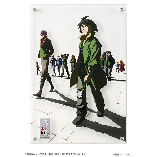 | We were a little shocked to realize that it’s already the 10th anniversary of Mobile Suit Gundam: Iron-Blooded Orphans! Bandai is celebrating with extra-special commemorative items, including the art print shown above (which combines canvas and acrylic elements, and comes with a unique serial number). There’s also a stunning art book collection: a three-volume set housed in an illustrated box. |