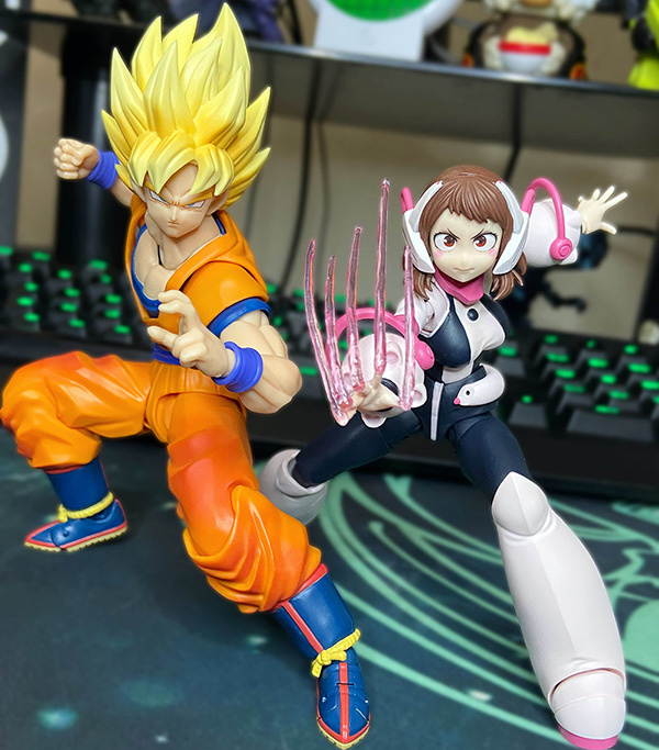 | The first thing I noticed when this thing was revealed, was that compared to the Revoltech, she has SO much "girth" to her. Both are amazing and I guess im just stuck with both Uraraka's now lol. This figure's articulation is great, the hinges in the thighs was definitely quite a surprise however! The expressions are all great, and even that extra Toga head! Absolutely great release and I recommend for any Uraraka fan, even if you already have the revoltech! |