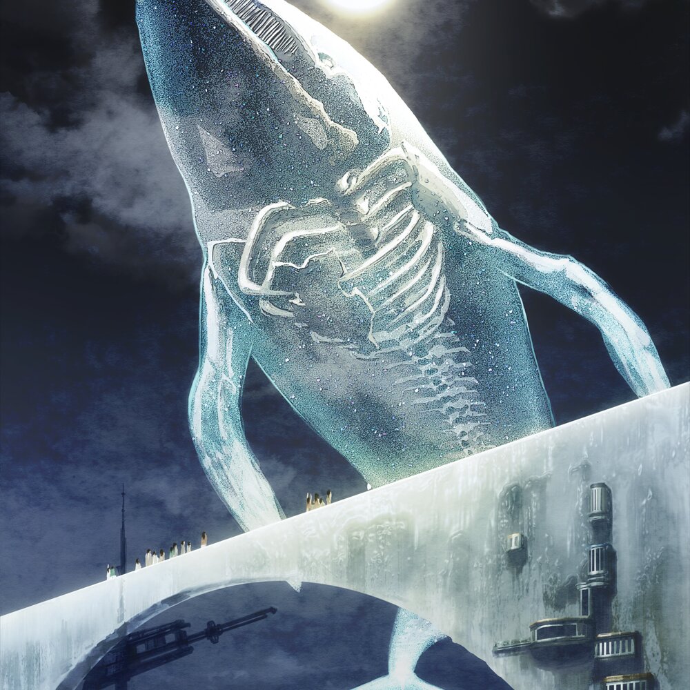 Hollow WhaleI drew a skeleton whale swimming freely through the sky.