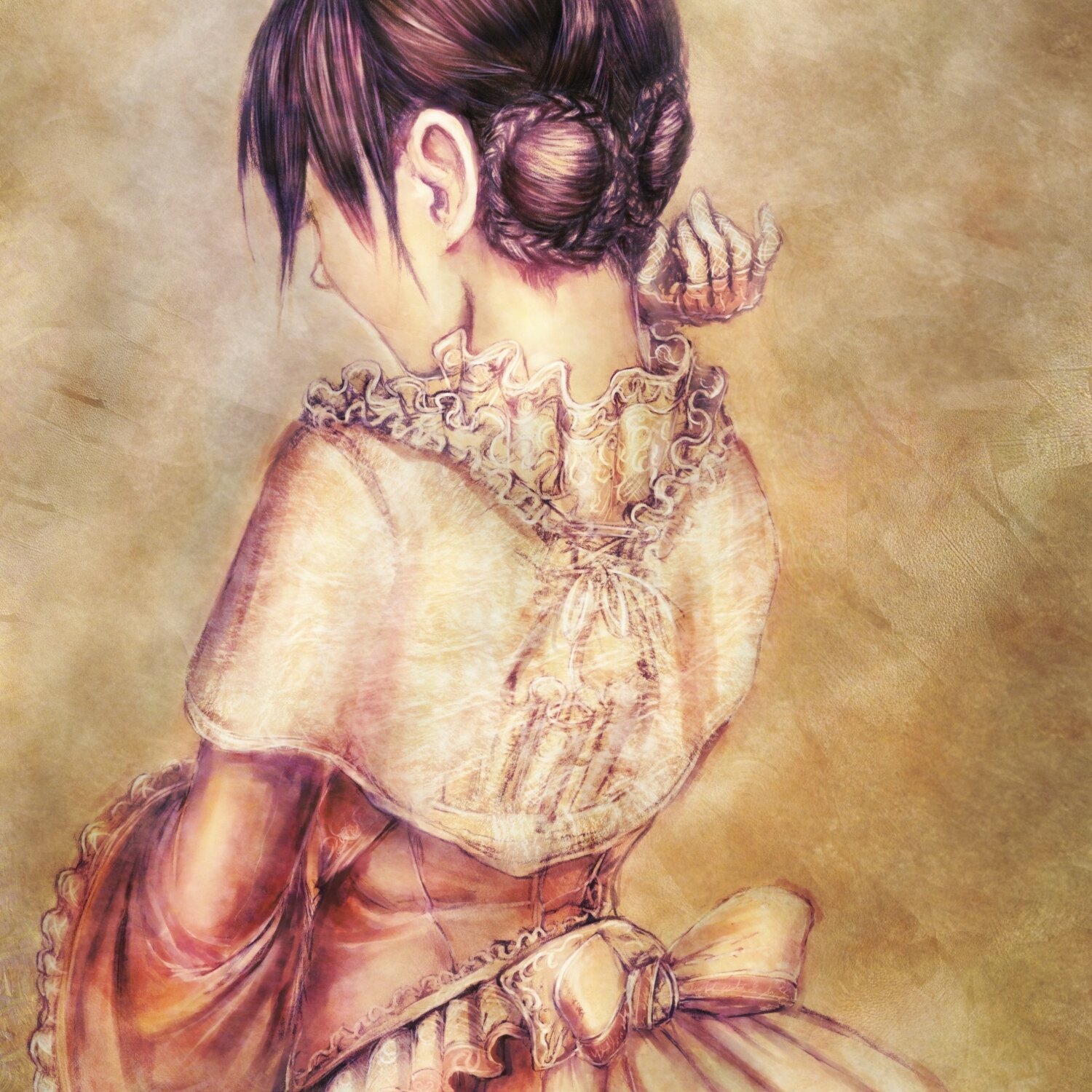 Girl in a DressAn illustration depicting her hairstyle and the ornaments on her dress.