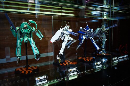 The interior decor includes Valkyrie figures as well as tons of items themed after those used in the series, making for extremely busy interior. Many items are in-jokes that fans who have seen the anime will understand, like Sheryl Nome posters and the mascot character of Nyan Nyan Hanten where Ranka works. The decor isn’t just from Macross Frontier; items from The Super Dimension Fortress Macross, Macross 7, and other works in the series’ history are casually strewn about as well. Those well-versed in the series will likely enjoy just searching through the decorations.