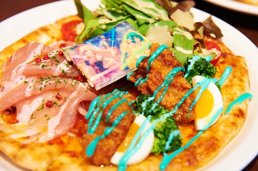 Cafe & Bar Characro is a unique restaurant that holds events and changes its decor and menu items to tie in with anime. Their collaboration with the popular series Tiger & Bunny to celebrate the release of the movie ended on July 13, and a new collaboration called “Cafe & Bar Characro feat. Macross Frontier” themed after Macross Frontier opened on July 27. The concept is that Nyan Nyan Hanten, a restaurant that appears in the series, opened a new restaurant as a Western-style cafe and bar. Both the interior decor and the menu reproduce the world of Macross Frontier.