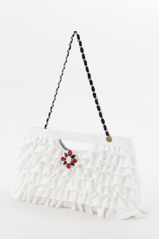 The Kaito Kid bag is white enough to illuminate a dark night and has gorgeous, fluttering frills. Superior quality grosgrain ribbons are used plentifully on both sides of the bag, and by removing the chain it can also be used as a clutch bag.