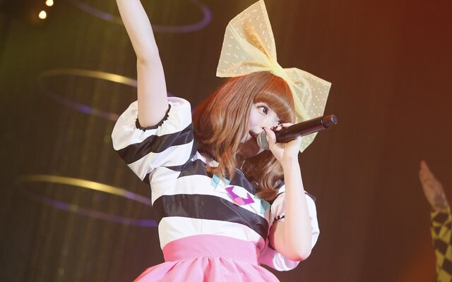 The stage was decorated with candles and the number 22, and the crowd screamed cheers as Kyary, with chestnut brown hair, a large tulle bow, and a balloon-like pink skirt appeared and greeted the crowd announcing she became 22 years old.