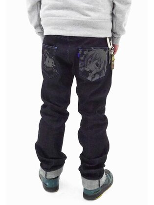 Next are jeans showing lots of Chino’s main color! The back pocket features a large design of Chino looking shy. The design, which has been semi-permanently laser processed, is created to mold into the fabric with every wash.