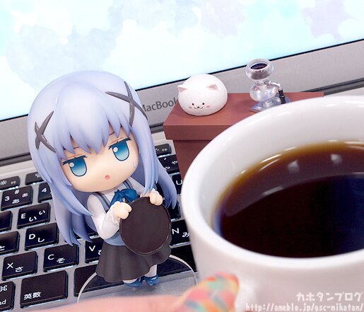 Chino-chan doesn’t really like black coffee… so I guess she is blowing this to cool it down for me!!