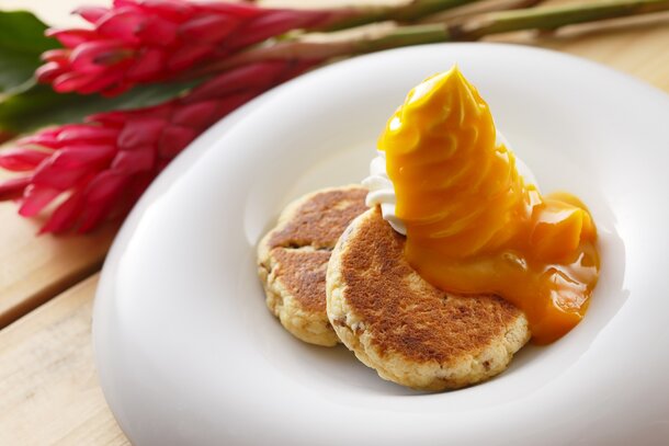 The hybrid dessert "scookie" is a combination of a scone and a cookie, and it's popular for its unique texture - crunchy on the outside and wonderfully moist on the inside. Scookies are particularly delicious when enjoyed freshly-baked and served with your favourite toppings. Why not try a scookie with rich Hokkaido soft serve ice cream and homemade compote?