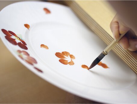 The NIKKO Hand Painting line features tableware which is influenced by professional chefs. Themed around the senses of happiness and atmosphere found in nature, it dares to defy modern techniques by putting incredible care into each product through painting done by hand. Each piece is made of pure white NIKKO fine bone china 1 and features subtle Japanese-style painting in a delicate gradation that appears almost transparent to the extent that you can almost sense nature’s light, scent, and the passage of time. These are special pieces you can’t find anywhere else.