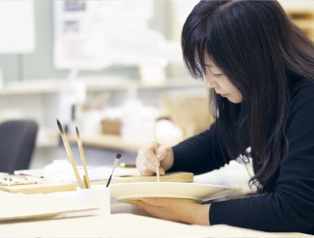 ^2^ The hand-painting department of NIKKO. Based on the nature-rich northwest region of Japan, each piece is carefully crafted and painted by hand to express the happiness and atmosphere found there. They manage to use delicate and nearly transparent gradations that would be impossible without being done by hand, making each product unique.