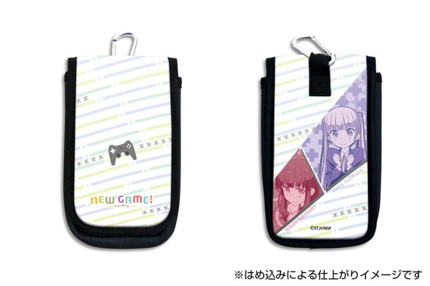 This mobile pouch features Aoba Suzukaze, the newest member of the video game developer Eagle Jump in New Game!, as well as her senpai in the group, Hifumi Takimoto! The front has a simple design, making it a great item for daily use! It’s the perfect size for phones, stationery, or small portable games. The carabiner can be used to attach it to your belt loop or the metal fixtures on a bag. The beautiful colors are applied using a sublimation technique. Don’t miss out on this pouch!