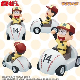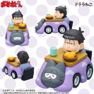 The lineup includes six versions: Osomatsu’s red 4-wheel OsoCart, Karamatsu’s bathtub-like Karamatsu AGOGO, Choromatsu’s cart featuring Totoko called the Choromatsu Shikosukii, Ichimatsu’s kotatsu-style Dotera Neko, Jyushimatsu’s baseball-shaped The Bullpen, and Todomatsu’s heart-shaped Totty Wagon.