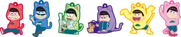 The six brothers from the TV anime Osomatsu-san are appearing in cat-eared hoodies in their characteristic colors for a limited edition Osomatsu-san rubber strap set (3,888 yen; tax included, shipping separate)! The set is available only at Osomatsu-san event shop in Namja Town Satellite in Aichi, Tokyo, and Osaka, and pre-orders opened on Oct. 8.