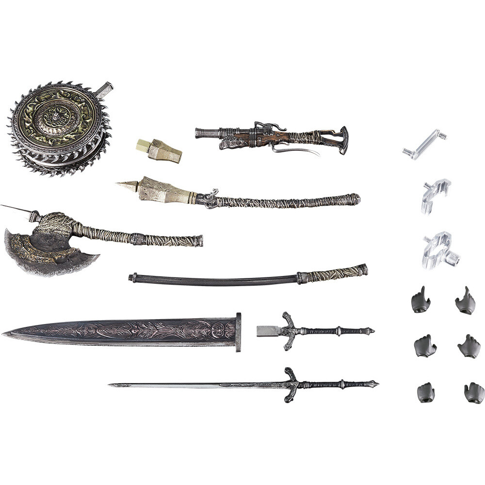 - Special attachment parts are included to display the Whirligig Saw and Ludwig's Holy Blade on the back of figma Hunter (sold separately).