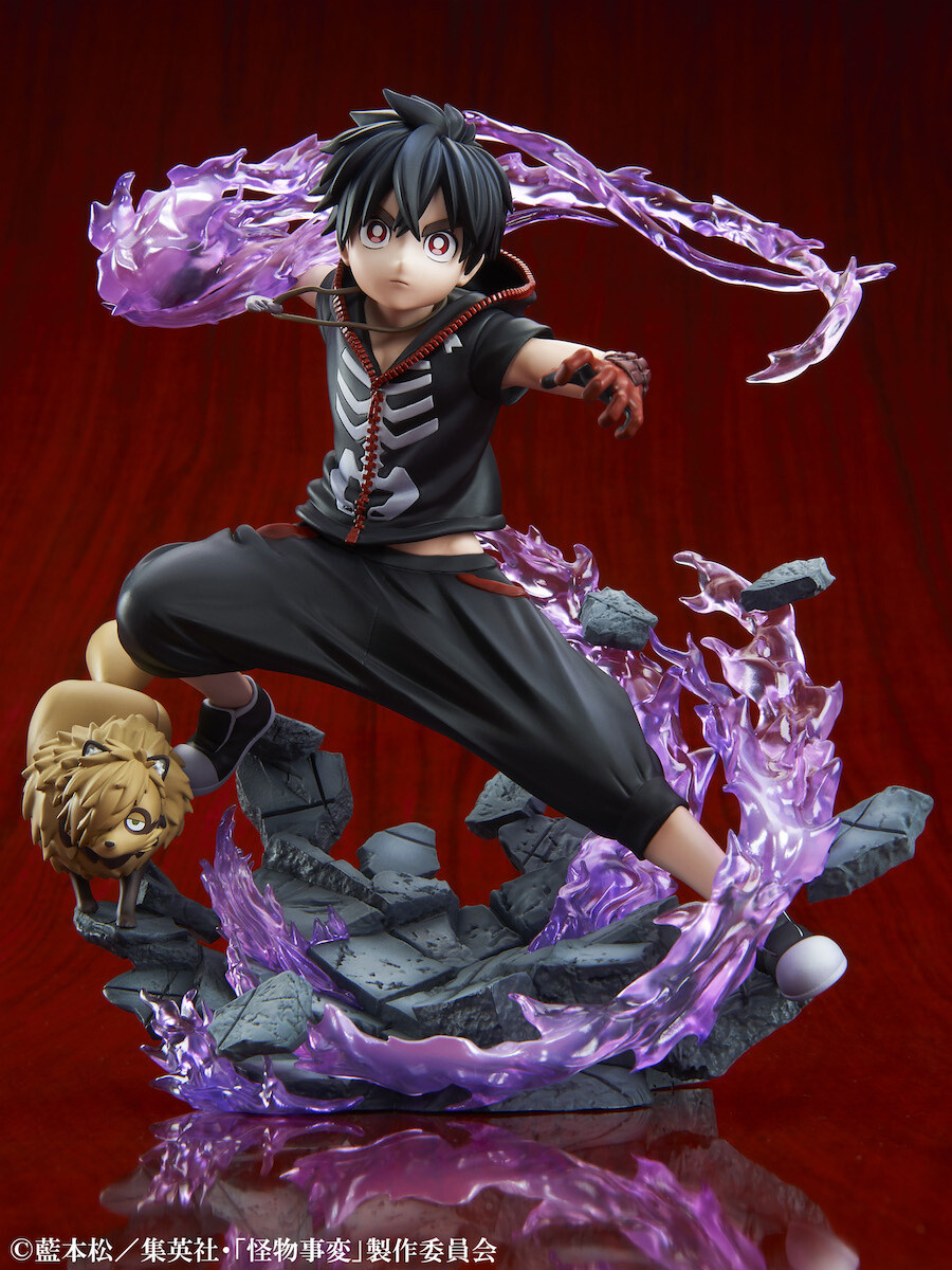 From Bandai Namco Arts comes the first scale figure of Kabane Kusaka from the TV anime Kemono Jihen! Measuring 8.1" in 1/8 scale, the figure recreates an intense battle scene with Kabane conjuring blue flames around him as the ground beneath him crumbles and Kohachi Inugami runs at his feet in his kemono form. The blue flames make use of clear materials for a realistic look and the careful, detailed sculpting captures a sense of dynamic movement. Also included is an optional Awakening face part, giving you multiple ways to display him!