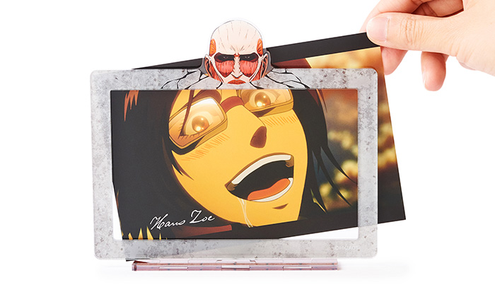 今回のイベントでは、アニメも大人気な「文豪ストレイドッグス」「進撃の巨人」のキャラクターをそれぞれボンズ、ゆーぽん先生が描き下ろし!キャラと一緒にカードを飾ることの出来る「アクリルカードスタンド」をお届けです!