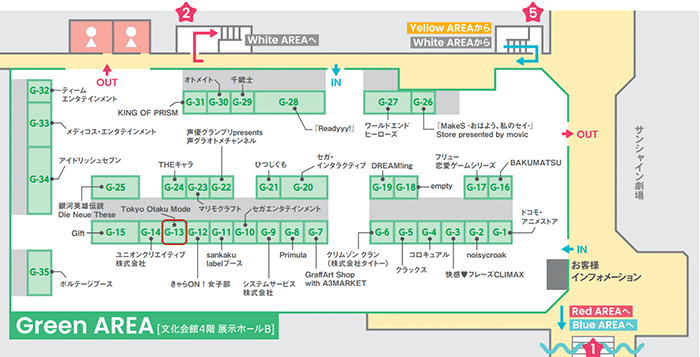 | 会場 | 池袋サンシャインシティ Red AREA / Blue AREA: 池袋サンシャインシティ ワールドインポートマートビル4階 展示ホールA Green AREA: 文化会館4階 展示ホールB White AREA: 文化会館3階 展示ホールC Yellow AREA: 文化会館2階 展示ホールD |