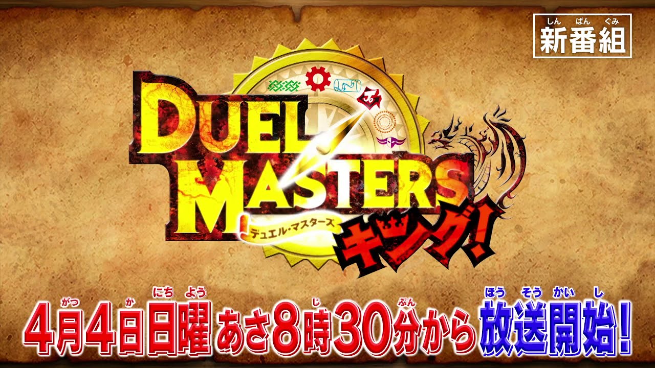 Duel Masters King! is the 16th anime in the series and the second season of *Duel Masters King. It is being animated by Brain’s Base and features once again Hiroshi Ishiodori (Duel Masters!!, Kiss Him, Not Me, Rin-ne 3) as director with Yoichi Kato (Aikatsu!, The Idolm@ster Million Live!, Space Brothers) handling series composition, Yasuyuki Noda (Bikkuriman 2000, Granbelm, Princess Connect! Re:Dive) handling character designs, and Jun'ichi Igarashi (Duel Masters, Gokujo!! Mecha Mote Iincho, Rockman.EXE Beast+) composing the music. The anime will premiere in Japan on April, 5, 2021.