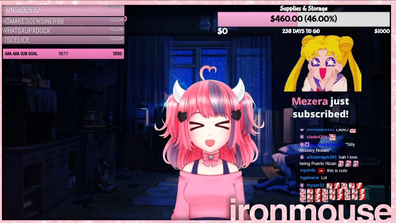 Ironmouse is a popular English language VTuber with a long history in the streaming community. Prior to becoming a VTuber, Ironmouse streamed on Twitch with an anime avatar and made a name for herself with her unique vocal talents. Fans love her wild antics, genuine kindness, and affinity for dirty jokes. In late 2020, she gained agency representation and revamped her approach to Twitch and YouTube.