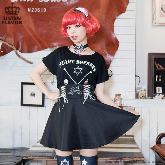 You’ll look positively heavenly with this angelic lace-up skirt from LISTEN FLAVOR’s 2016 Spring/Summer Collection~! This free-size piece comes in lovely pink, black, and lavender so you can wear it with just about any look! It’s flowing skirt, lace-up front, and winged heart motif will leave you feeling like the sweetest angel around.