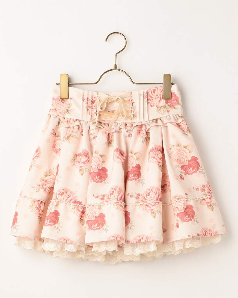 This enchanting sukapan skirt from fashion brand LIZ LISA will have you looking positively rosy! A free size bottom made of polyester, the print is showered with pink and red roses and soft pastel dots. Frills frame the main body and the bottom of the skirt while ribbons frame the middle. The calming colors of pinks and creams will be charming with any coordinated pieces!