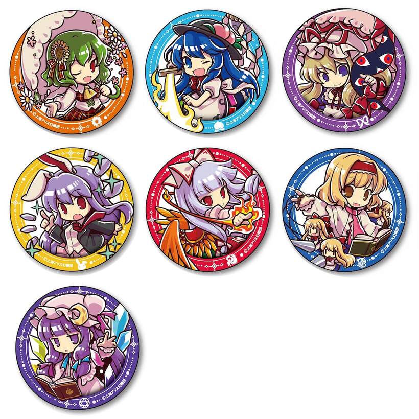 Bring a little Touhou magic to your world with these great big tin badges! Measuring 3”, this second series includes Yuuka Kazami, Tenshi Hinanawi, Yukari Yakumo, Reisen Udongein Inaba, Fujiwara no Mokou, Alice Margatroid, and Patchouli Knowledge.