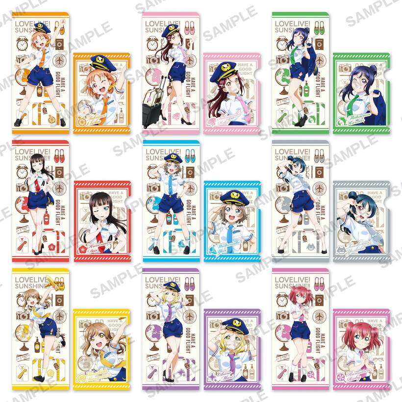 Complete set of 18 colorful clear files featuring the Aqours school idols! ✈️