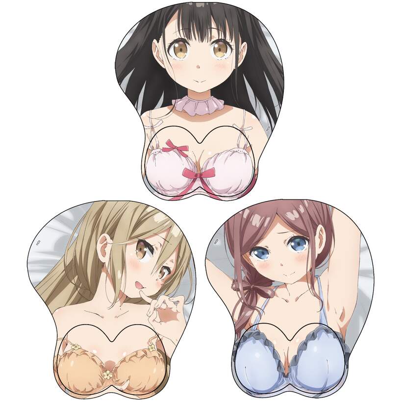 The girls of One Room 3rd Season are here to protect you from wrist strain! From Top Marshal comes oppai mouse pads featuring artwork of Yui Hanasaka, Akira Kotokawa, and Saya Orisaki lying down in cute lingerie. Choose your best girl and let them soothe your weary hand!