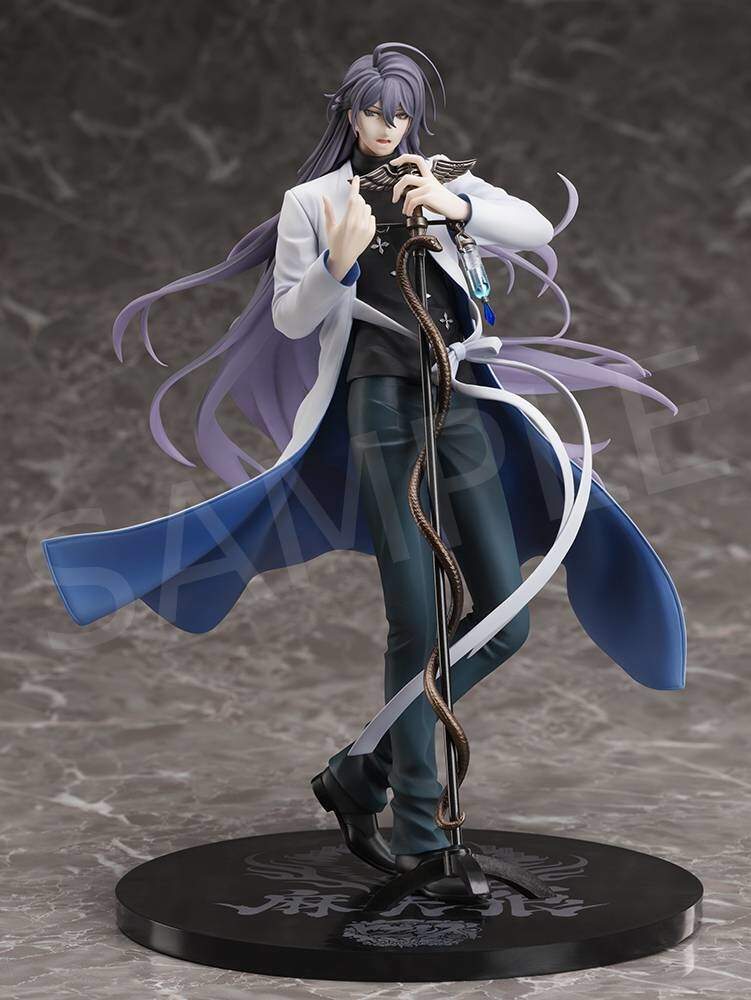 From Aniplex with sculpting by Carve Models comes ill-DOC himself Jakurai Jinguji from the popular anime Hypnosis Mic -Division Rap Battle- Rhyme Anima ready to lay down some healing rhymes! The former member of The Dirty Dawg and current leader of Matenro is captured in 1/8 scale at a height of 10.6" in the middle of a rap battle as he commandingly grips his Hypnosis Mic themed after the Rod of Asclepius. He features impeccable sculpting and a dynamic look with his coat and long, flowing hair gently swept up in the breeze, and he stands on a base featuring the Matenro logo. Be sure to display him in your collection together with other Hypnosis Mic characters to recreate intense rap battles!