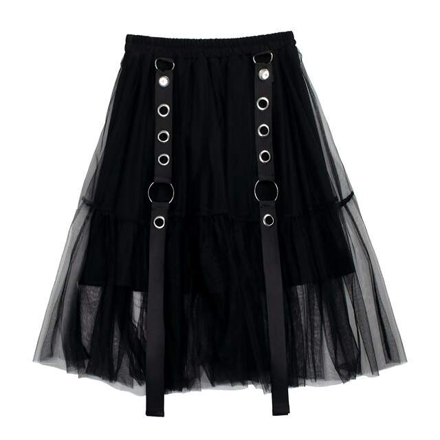 LISTEN FLAVOR Belt Equipped Fluffy Tulle Skirt