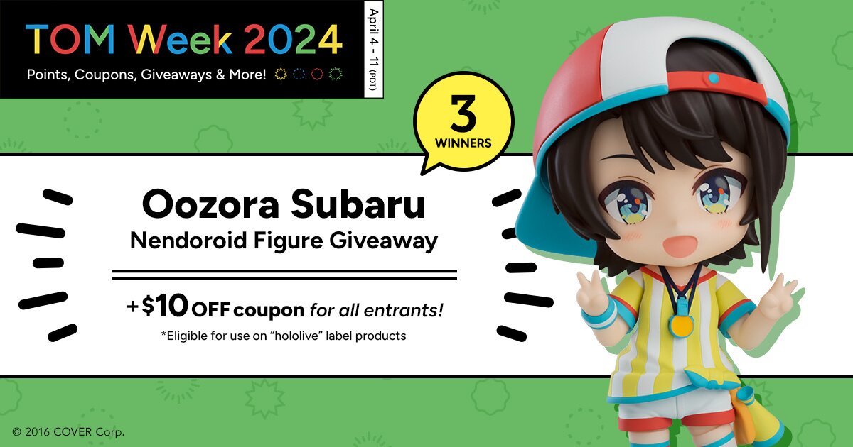 - All participants will receive a $10 OFF coupon code usable on the product label specified in the giveaway details (“Evangelion Series”, “Atelier Series”, or “hololive”)