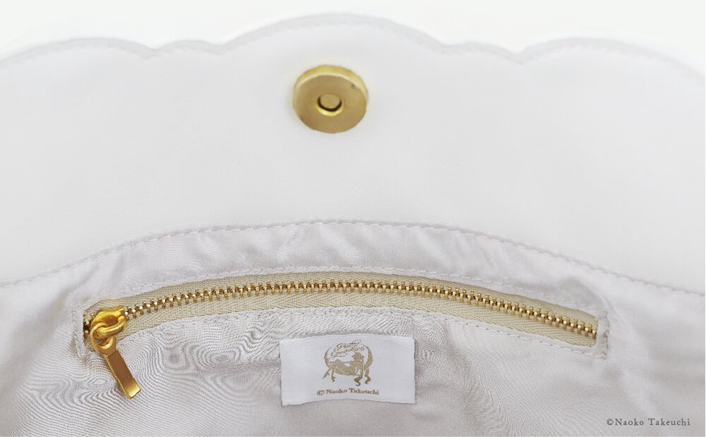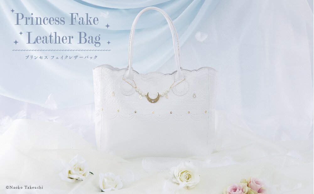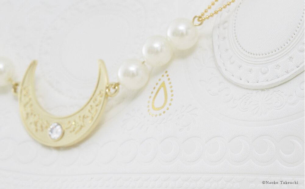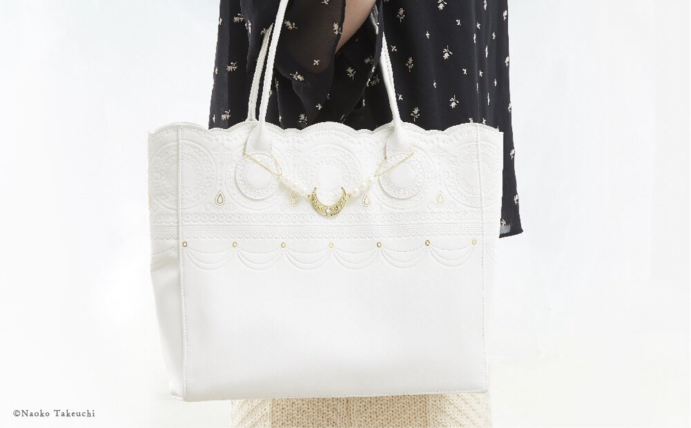 Inspired by Princess Serenity’s dress, this bag is mainly white and has a luxurious feel while an original charm arranged with imitation pearls and rhinestones in the motif of Princess Serenity's hair ornaments adds to its brilliance.