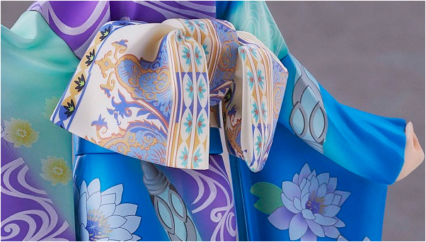 Asuna’s kimono was created by Arisa, one of the few female Kyoyuzen creators who have received the national certification of Traditional Artisan of hand-painted Kyoyuzen (furisode) kimono. She works out of her atelier, Arisa, in which she creates kimono and obi by fusing traditional techniques with modern methods of expression.
