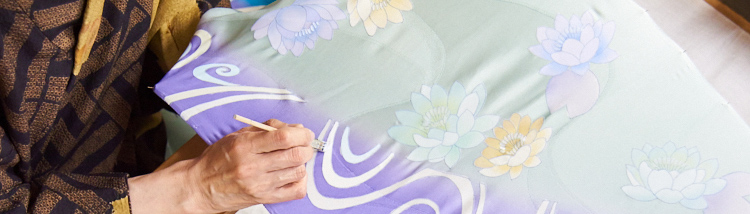 She started her original brand, Arisa, in Kyoto, and offers total Japanese-style outfits that bring forth the beauty of the modern woman. She has a dialogue with her customers about what they want and carefully considers her customer’s desires as she uses traditional techniques with modern methods of expression that do not restrict her within current conventions. She devotes herself to creating her pieces by starting with choosing the fabric.