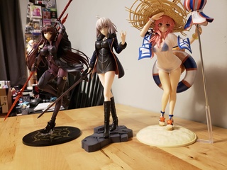 Summer Event may be over but you can carry a piece of Summer with you wherever you want. I was originally going to get all of these but decided against it. They are sculpted very nicely but the paint jobs are inconstant. I got both Kiyohime and Scathach. I really am pleased with Scathach but felt like the paint job on Kiyohime was not as good. It's also difficult to get Kiyo onto her stand and get her lance behind the ring stand. The paint on her lips is actually already faded. Scathach is bae and came out quite nicely. Her skirt is translucent and she carries three tiny kunai in her right hand. overall not bad for under $20.
