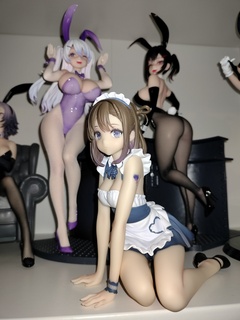 The figure can be displayed without the large base to save on space. The sculpt and paint are clean and sharp, though the shading is subtle enough that the figure may look a little plain. Under normal lighting, the skin tone can look like it has a warm hue like in the promo pictures, but it can also look like it has a cool hue if you look closely or shine a flashlight on it like in my picture. For the private parts, what you see is what you get since the neckline of her top hugs her breasts and cleavage tightly. (In addition, her underwear is brown, if you are curious.) Overall, she is cute, but she may be overshadowed among flashier sexy pieces.