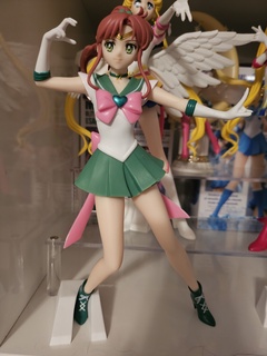 I love this figure! The Glitter & Glamours line is always solid and Jupiter is no exception. I was a little hesitant when I pulled her out and saw her base. All of the Sailors have a base that supports one foot and I've found the ones on Super Sailor Moon and Eternal Sailor Moon are a little loose meaning the can fall if their display case is bumped, but Jupiter seems pretty solid despite how her foot is angled. Details are cute, and the pose is iconic!