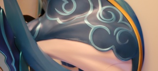 Wish I could select more pictures to illustrate the weird issues with this figure. From a distance, she's fine, and really is a gorgeous figure. But up close there are weird bumps in parts of her paint job, like they didn't sand over the figure before finishing her. There are also weird discolorations like the one pictured, and her "halo" is attached which makes it seem easy to break off, and seems to have scratched against her bow to leave marks. Considering how beautiful my Consort Yu figure was, I definitely expected better quality from Myethos for this one.