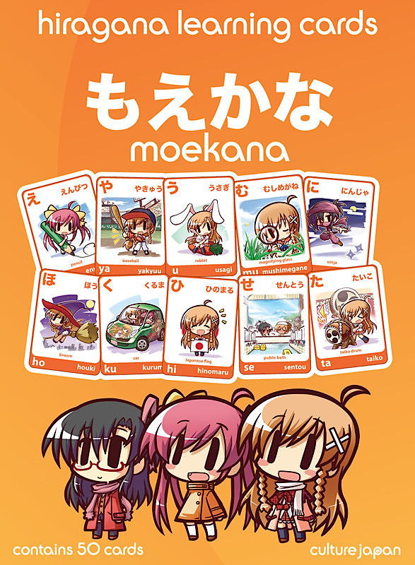 Moekana are a set of cards to help folks learn the basic Japanese syllabary: hiragana.
