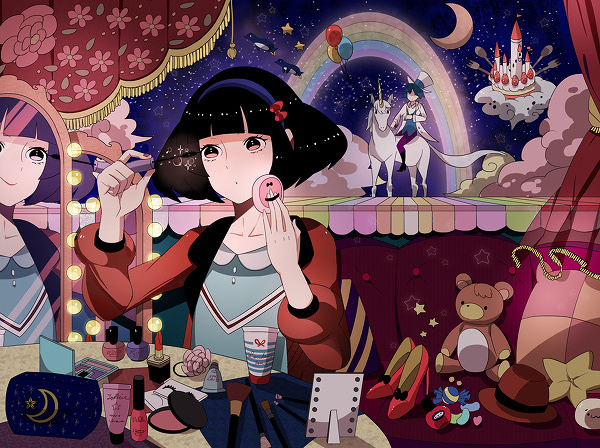 It was used for the Japanese apparel brand "earth music&ecology." I wanted to depict a fantasy-like space with a lot of girly things. It was a lot of fun drawing all the necessities of a fairy-tale world - castles, unicorns, etc.