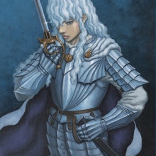 The Blu-ray first edition jacket will contain an illustration of the character Griffith by the original artist Kentao Miura.
