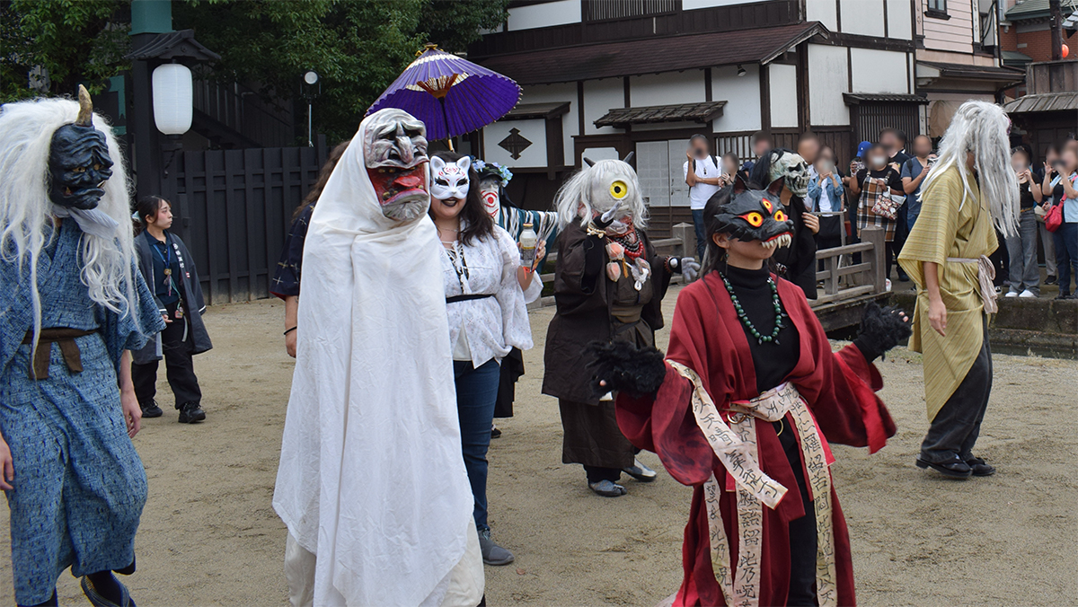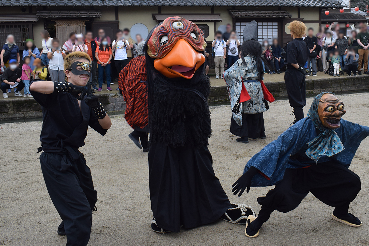 As mysterious and mystical as they are, we wondered if yokai could be found in real life? Our hunt led us to Toei Kyoto Studio Park, a theme park in the Kyoto area where you can experience the atmosphere and scenery of historical Japan from the Edo period. In fact, the park is often used as a set for numerous historical films known as jidaigeki which translates to “period dramas”. It turns out that this historical setting is perfect for yokai to live in as they are often out of place in our modern world. Thus, for a couple months out of the year, Toei Kyoto Studio Park becomes a yokai village during the Kaikai Yokai Festival where visitors get the chance to see and interact with yokai and learn more about them.