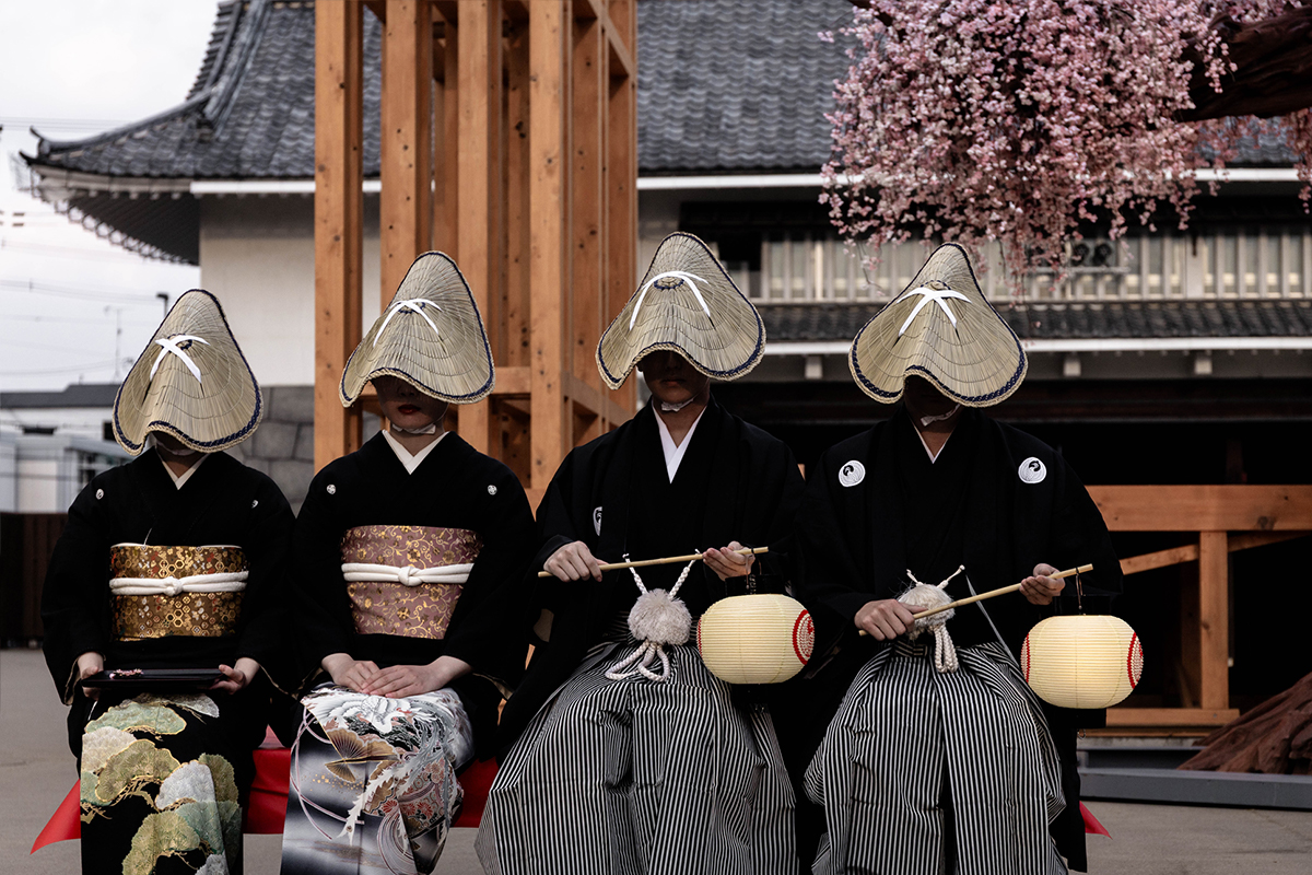 After milling about and enjoying the atmosphere of the town, the sound of music alerted us that the highly anticipated bridal procession was about to begin. Under the branches of a cherry blossom tree, the drama continued to unfold with each member of the bridal party taking their place beginning with the father of the bride and ending with the bride herself being led by her mother.